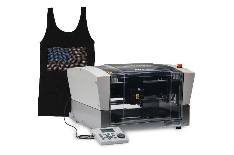 罗兰DG的GS-24桌面切割机是用于切割众多不褪色、热应用材料的完美工具,其中包括植绒、反射性透光 、闪粉、格丽特人造革和斜纹织物,应用于个性化针织衫、帽子、运动包和夹克衫上。 同时还具有用于制作炫酷T恤和附件的简单莱茵石模板图案。