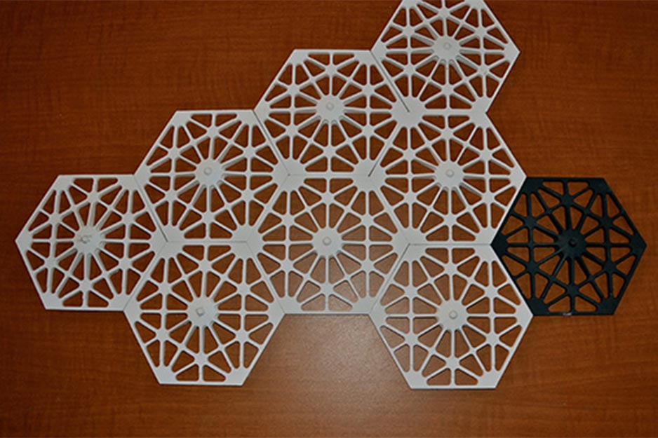 Students typically design their projects in Rhino, then use Roland's SRP Player software to mill the designs on the MDX. Projects include industrial and packaging designs as well as furniture and interior element designs. Students mill a variety of materials, including tiles, foams, plastics and Renshape. Some of the designs are final versions, while others are used as molds or as part of larger projects.