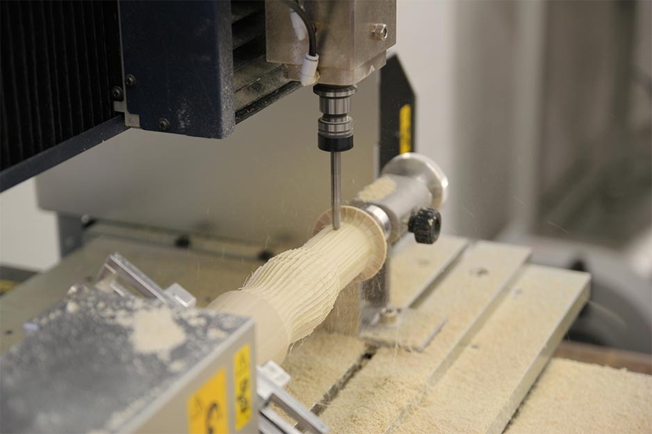 The MDX benchtop mills have been used to produce foosball player pieces, soda bottles and other cylindrical shapes, as well as wooden designs.  Students who created chessboards on the LEF UV printer will soon be using the MDX to mill the chess pieces.