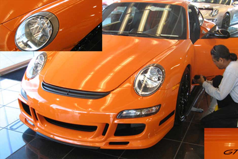 Wallace has been cutting and applying protective films in various forms for most of his career. Before opening his Southern California restyling shop, he worked at a ski shop in Iowa where he used protective film to preserve the top surfaces of snow skis. Years later, Wallace’s shop began doing touch up and bumper blending for OC Lamborghini. They always had plenty of work following the annual “Running of the Bulls” road race from Newport to Monterey. Costly repairs had to be made to the cars’ bumpers and hoods following every rally. The dealership and their customers felt there had to be a preventative solution to this problem.