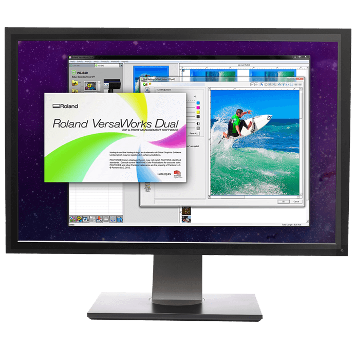 罗兰公司强大的RIP和打印管理软件能够提升打印效率和质量。所有罗兰喷墨打印机和喷切一体机均内置有适用于Windows PC系统罗兰VersaWorks,该软件配有直观界面和生产高级管理功能。而适用于Mac OS X系统用户的RolandPrintStudio则内置一系列省时高效的功能,可快速简单地管理打印生产流程。