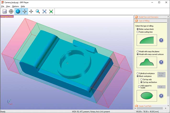 ClickMill软件可直接控制MDX-50的表面堆焊、钻孔、槽型面加工和其他加工流程,无需使用CAD或CAM软件。
