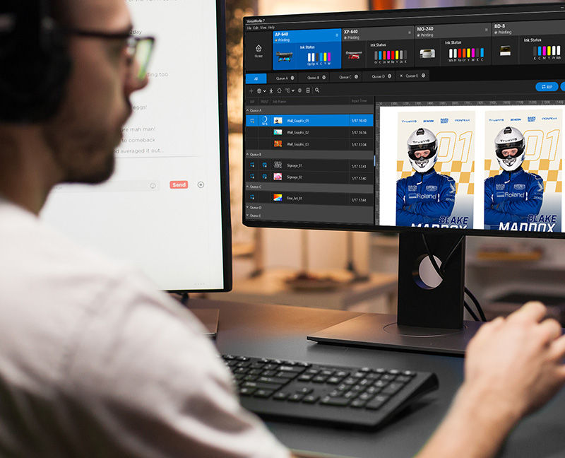 XG-640 配备了全新开发的 VersaWorks 7 RIP 软件 - 这是 Roland DG 迄今为止最强大、最直观的 RIP 软件 - 现已支持 Windows 和 Mac OS 操作系统。软件提供了一系列实用功能,可实现开箱即用的轻松打印管理。