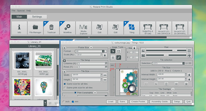 RPS可让用户完全控制图形输出,并选择颜色编辑和生产工具,包括专色选项,自动分步和重复功能以及平铺和嵌套工具,以充分利用材料和设备功能。其他特殊功能包括“应用指南”,其中提供了有关如何安装大规模平铺打印的说明以及用于精确印刷后横幅整理的索环定位工具。