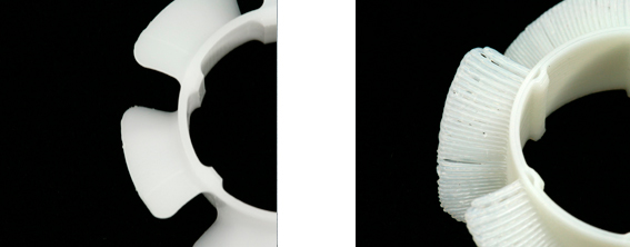 左:使用减式快速原型机(SRP)制作的亚克力轮胎