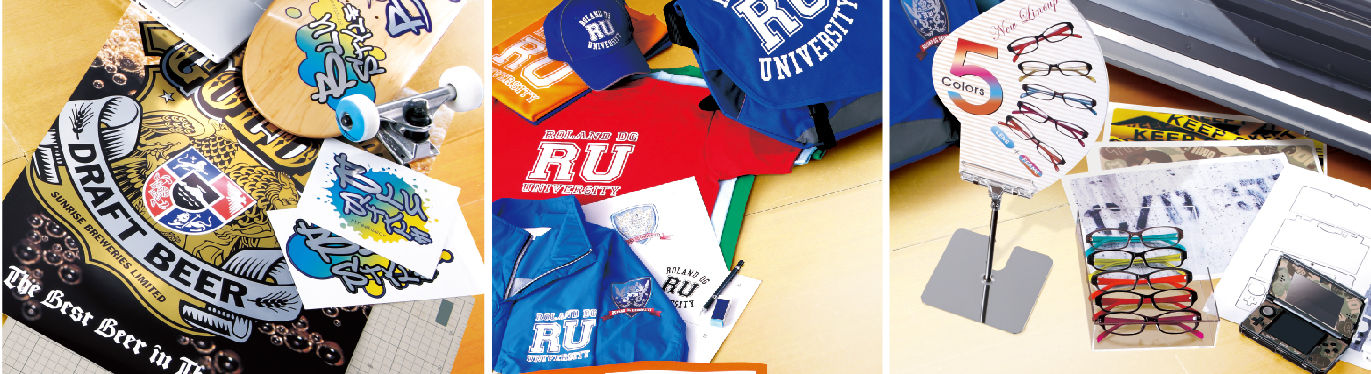 设计完成后由我们工程师进行简单处理,使用罗兰VS-30i,BN-20喷切一体机在衣服或是背包上实现个性图案; LEF-300,MPX-95进行UV打印和金属雕刻,都以完美无瑕的品质和非凡的的多功把设计师的创意成功地转化为实物。