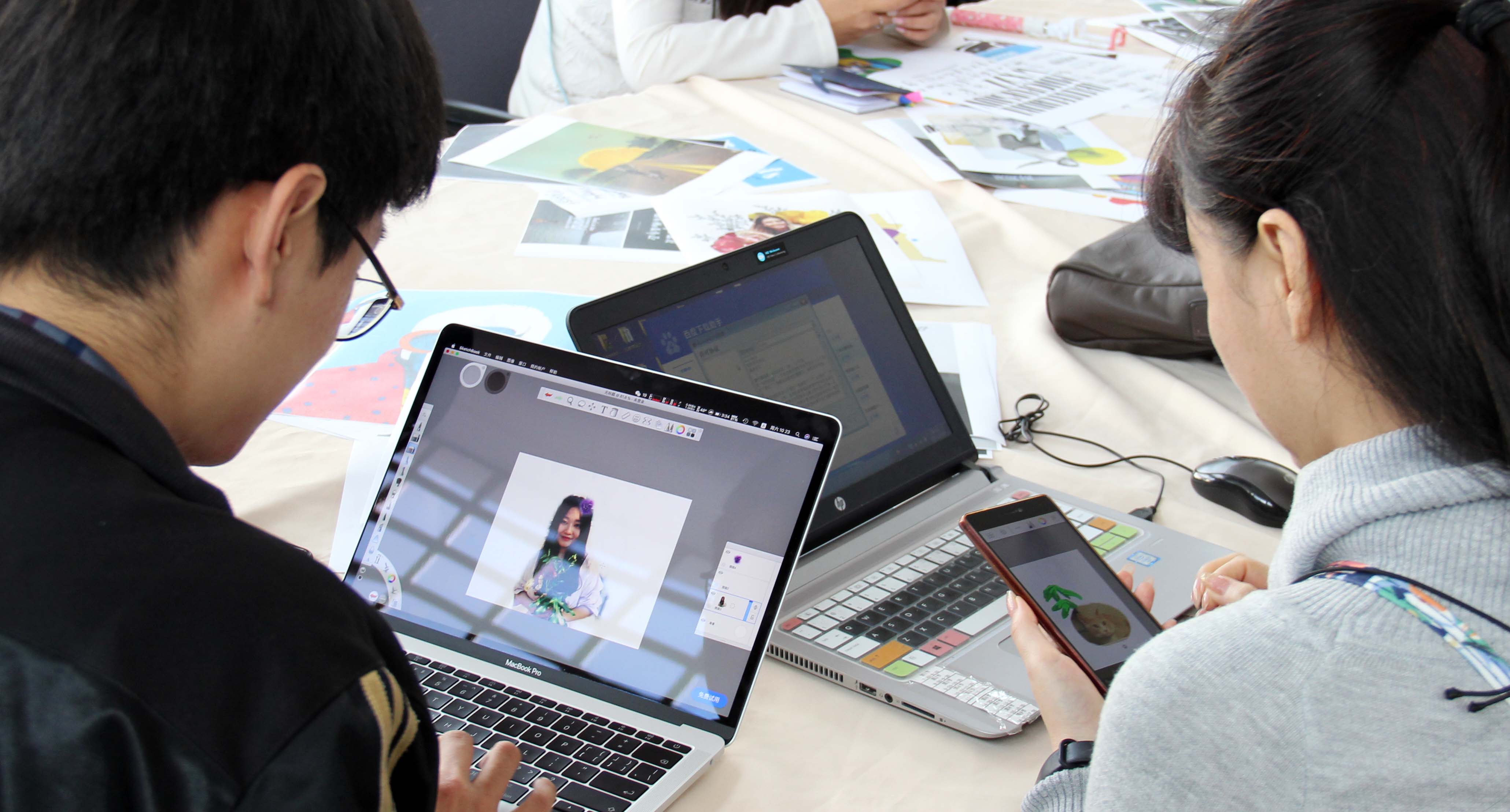 老师高首先让参与者们利用修图产品软件设计属于自己的“私人订制”,现场参与者天马行空:有将自己的照片和卡通人物的结合,有在软件上将文字恣意挥洒,独创一派行云流水的文字的......