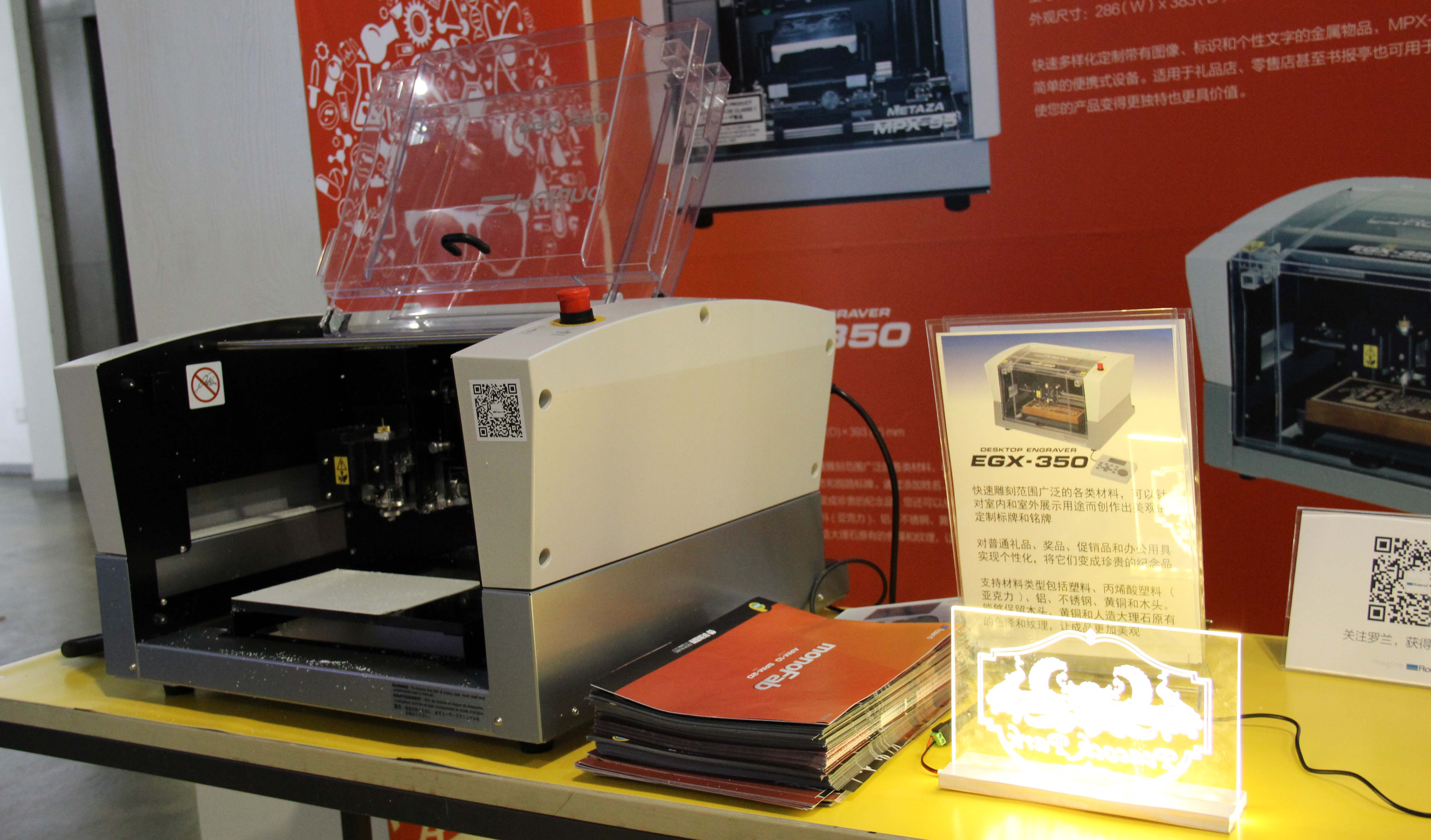 现场工程师介绍如何通过罗兰EGX-350雕刻机针对室内和室外创作出各种3D立体标牌和铭牌,添加姓名,事项或日期,对普通礼品,奖品,促销品和办公用具实现个性化。将它们变成珍贵的纪念品。