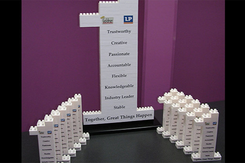 Recently, a distributor approached The Imagery Group asking for an eye-catching symbol around which to build his presentation. Johnson suggested using Promo Blocks to "build" number one while incorporating the client's logo and appropriate text. To create the project, Johnson's team constructed a 27-inch tall number one, then printed a large decal on the VersaCAMM. "Doing a one-off job like this with our screen printers would've been cost-prohibitive," said Johnson. "Our client was delighted, and used the customized Promo Blocks to literally build his case. "